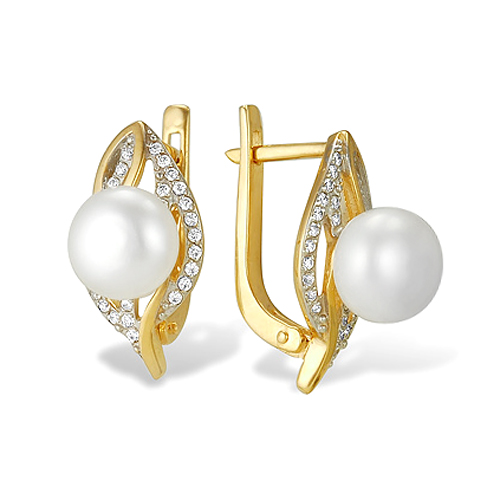 Серьги из желтого золота с белыми жемчужинами 8-8,5 мм. Артикул 11986