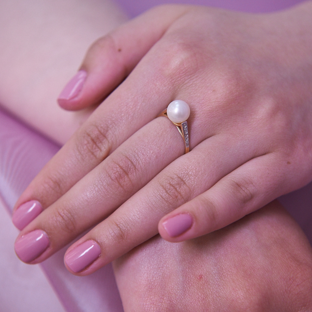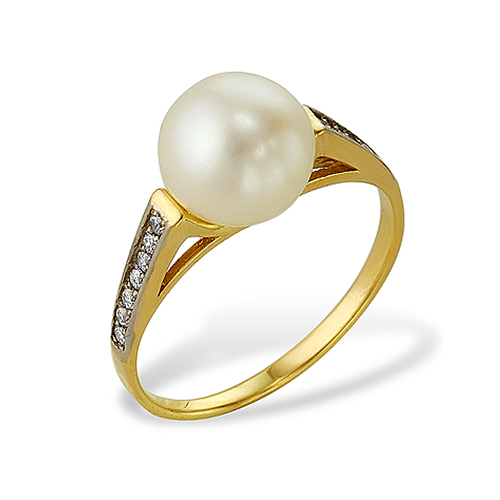 Серьги из желтого золота с белыми жемчужинами 8-8,5 мм. Артикул 9511