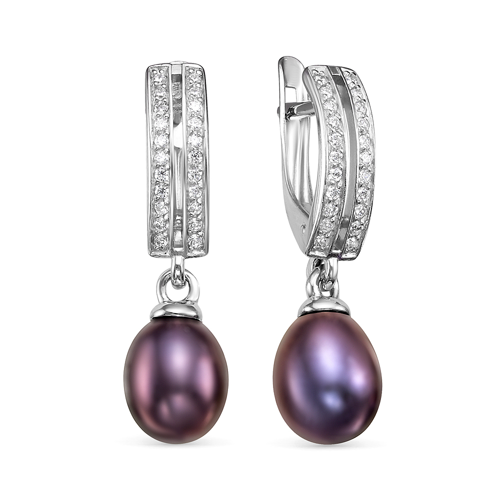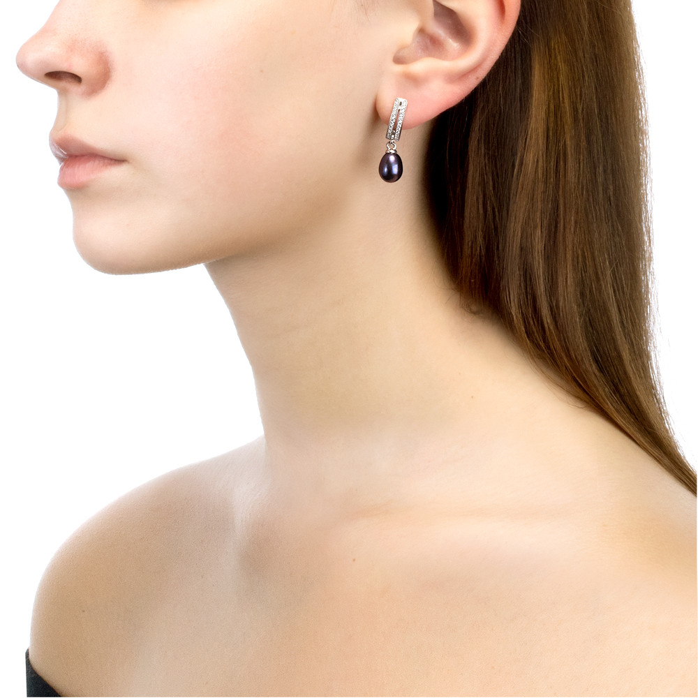 Серьги-пусеты из серебра с черными жемчужинами 8,5-9 мм. Артикул 11339