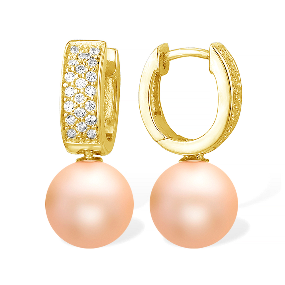Цепочка из желтого золота 585 пробы с розовой морской жемчужиной 9,5-10 мм. Артикул 9989