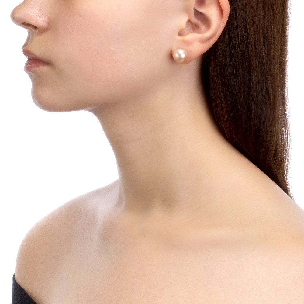 Пусеты из серебра с розовыми жемчужинами 11-11,5 мм. Артикул 8524