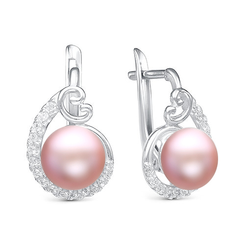 Серьги из серебра с розовыми жемчужинами 8,5-9 мм. Артикул 10800