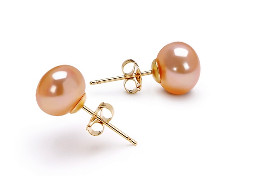 Пусеты из серебра с розовыми жемчужинами 8-8,5 мм. Артикул 11754