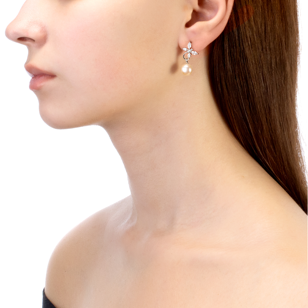 Двойные пусеты "Dior" из серебра с розовыми жемчужинами 9,5-10 мм. Артикул 10929