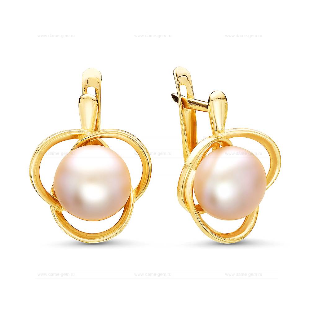 Серьги из серебра с розовыми жемчужинами 9,5-10 мм. Артикул 10388