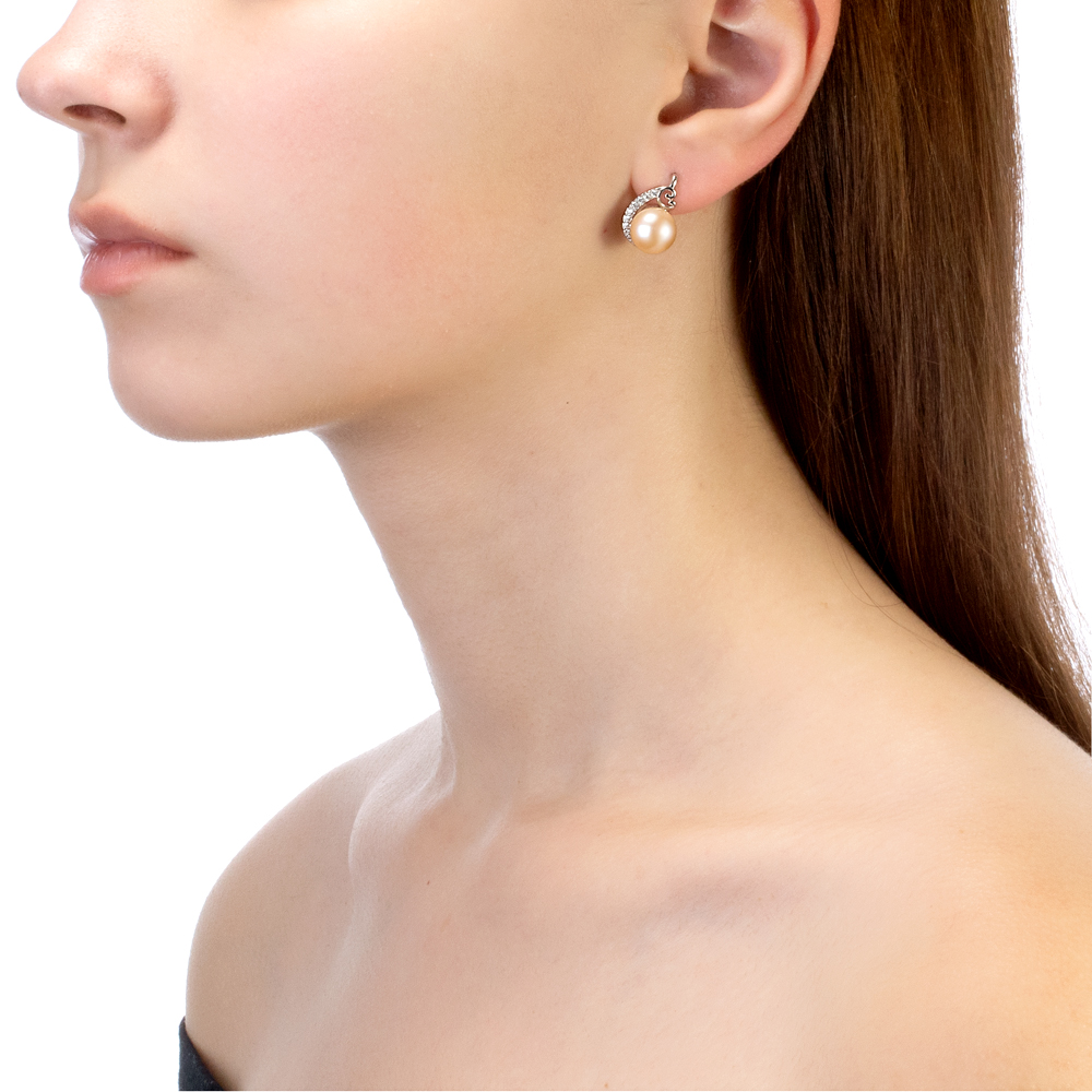 Двойные пусеты "Dior" из серебра с розовыми жемчужинами 10,5-11 мм. Артикул 11312
