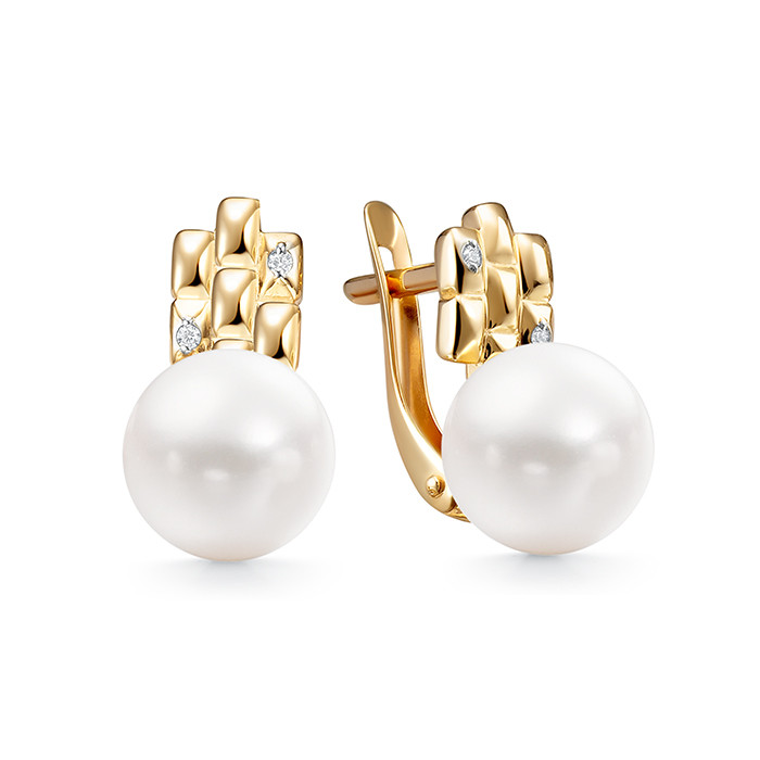 Серьги из желтого золота с белыми жемчужинами 8,5-9 мм. Артикул 11439