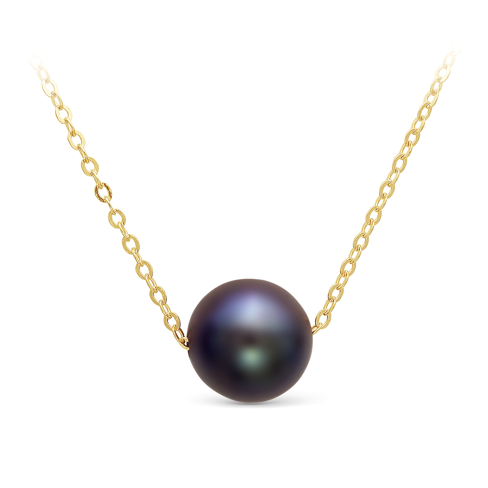 Цепочка из желтого золота 585 пробы с черной морской жемчужиной 8,5-9,5 мм. Артикул 10004