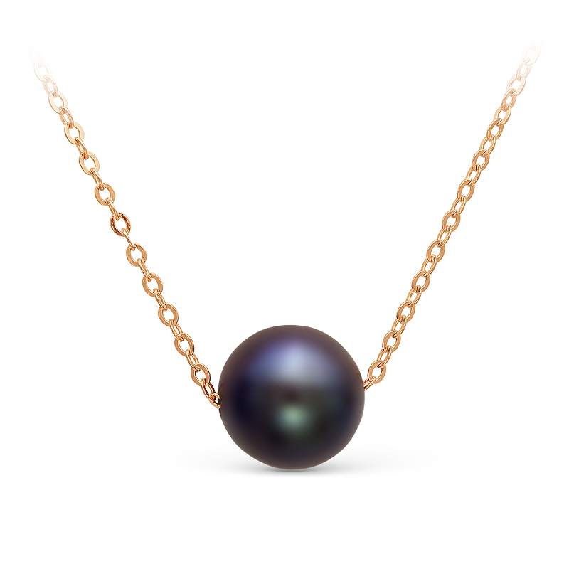 Цепочка из красного золота 585 пробы с черной морской жемчужиной 9-9,5 мм. Артикул 12045