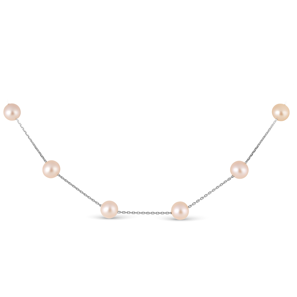 Цепочка из белого золота 585 пробы с розовыми морскими жемчужинами 7-7,5 мм. Артикул 9991
