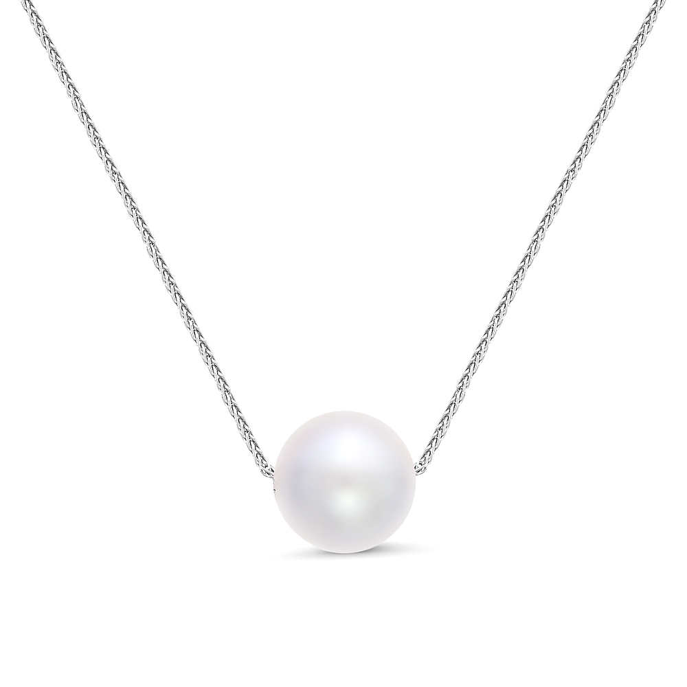Цепочка из белого золота 375 пробы с белой морской жемчужиной 9-9,5 мм. Артикул 12194