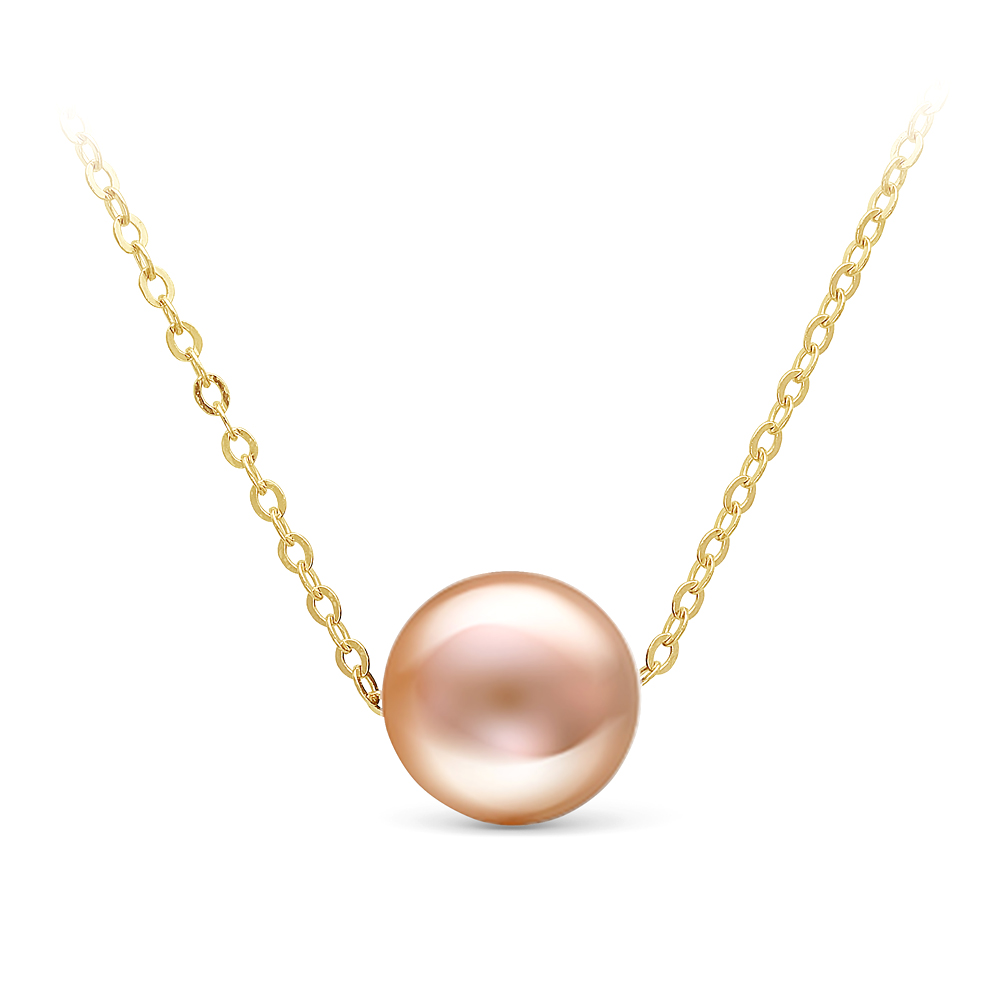 Цепочка из желтого золота 585 пробы с розовой морской жемчужиной 9,5-10 мм. Артикул 9989