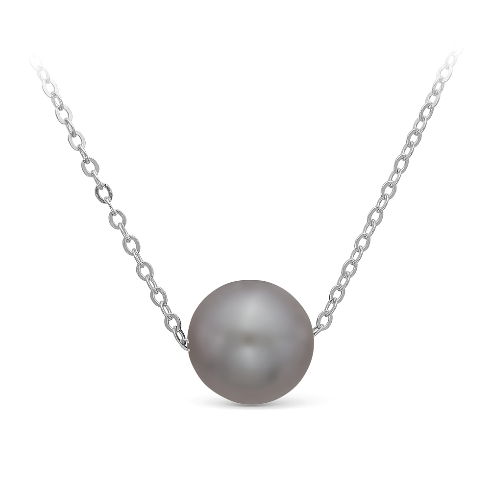 Цепочка из серебра 925 пробы с серой морской жемчужиной Акойя 8,5-9 мм. Артикул 12428