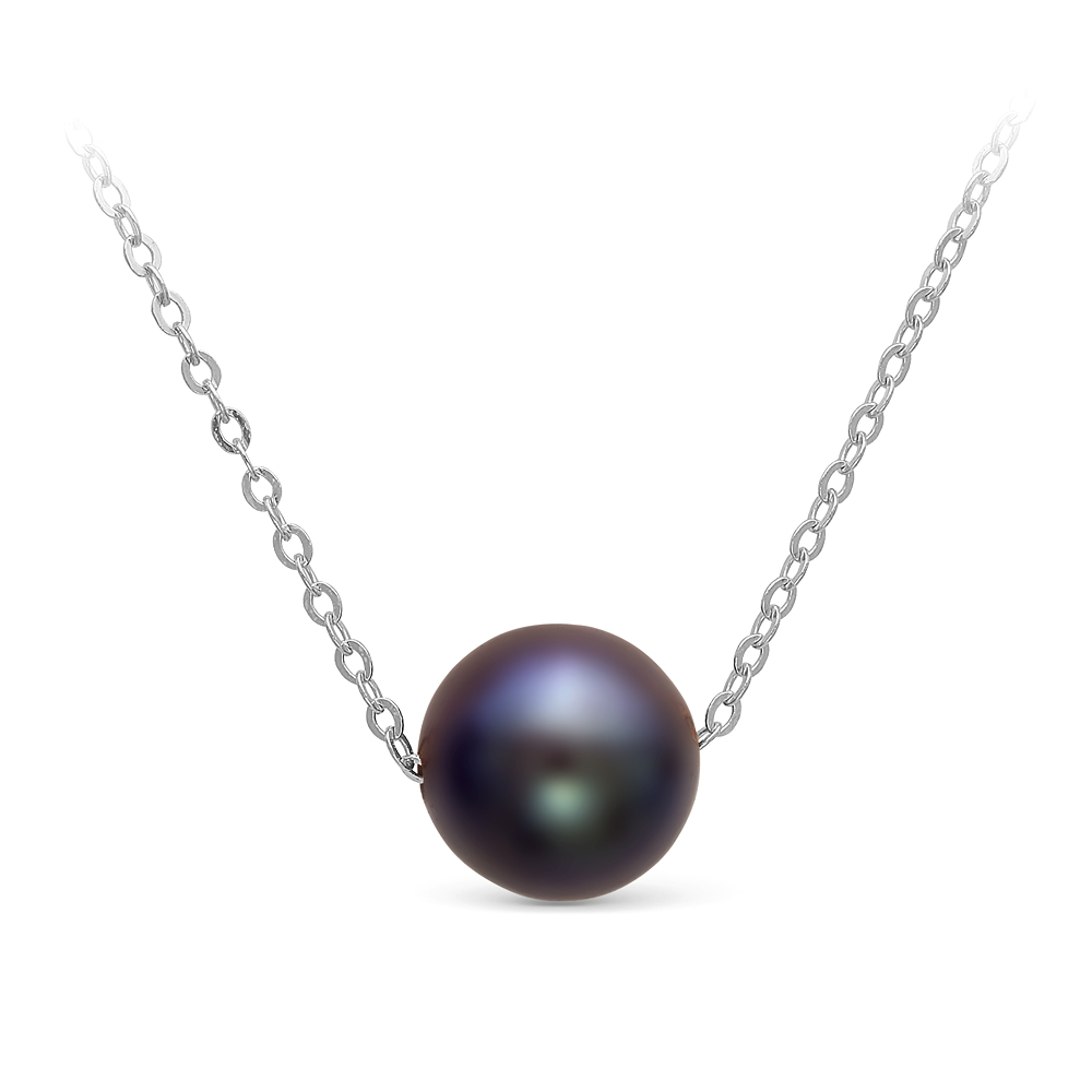 Цепочка из белого золота 585 пробы с черной морской жемчужиной 8,5-9,5 мм. Артикул 9770