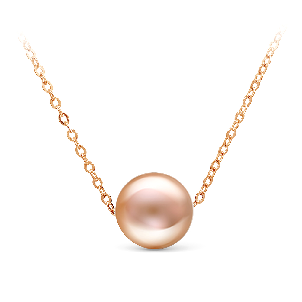 Цепочка из красного золота 585 пробы с розовой морской жемчужиной 9,5-10 мм. Артикул 11440