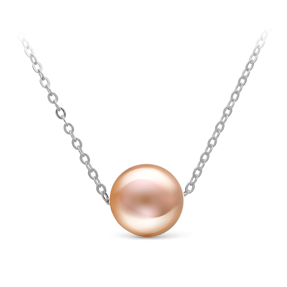 Цепочка из белого золота 585 пробы с розовой морской жемчужиной 9,5-10 мм. Артикул 9277