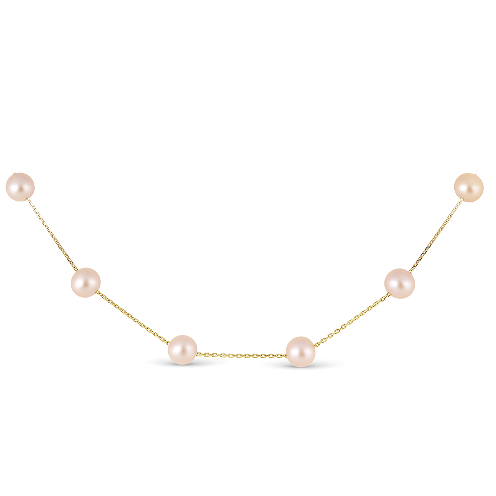 Цепочка из желтого золота 585 пробы с розовыми морскими жемчужинами 7-7,5 мм. Артикул 9104