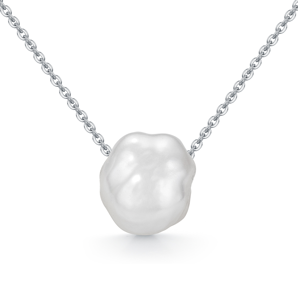 Колье из серебра 925 пробы с белой барочной жемчужиной 12-14 мм. Артикул 12875
