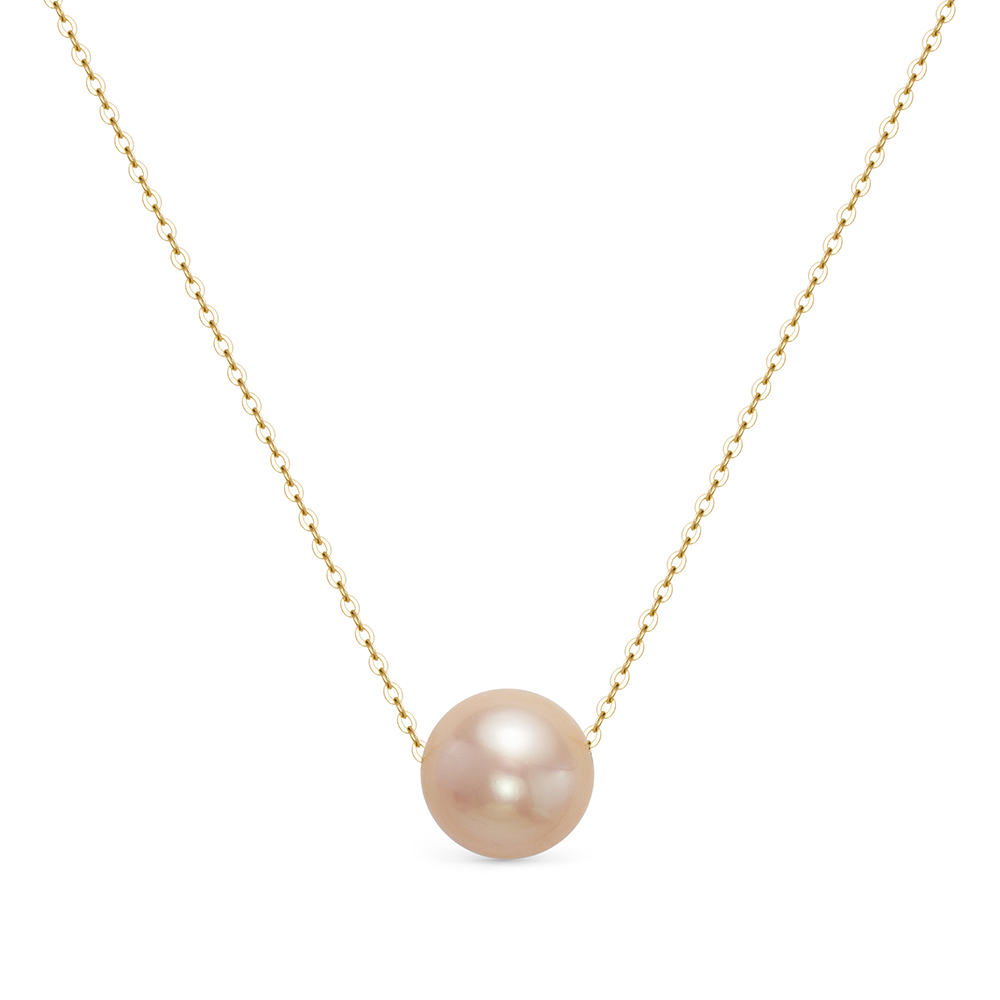 Цепочка из желтого золота 585 пробы с розовой сплющенной жемчужиной 11,5-12 мм. Артикул 12493