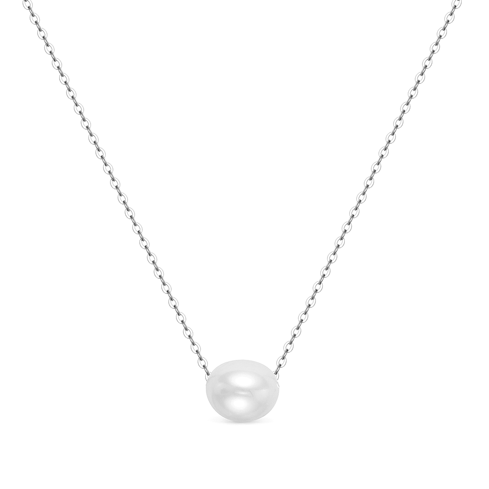 Колье из серебра 925 пробы с белой речной жемчужиной 6-6,5 мм. Артикул 9925